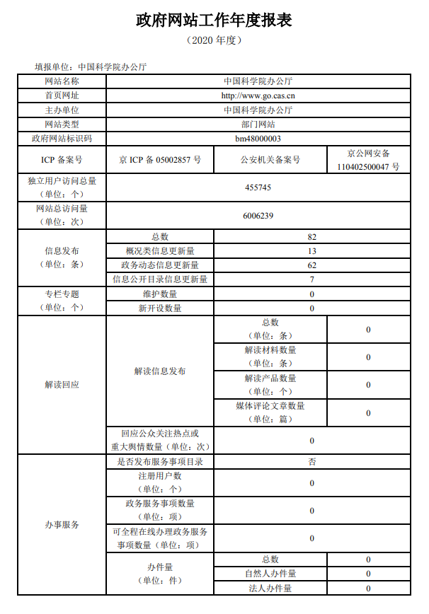 中國科學(xué)院辦公廳網(wǎng)站2020年度工作報表